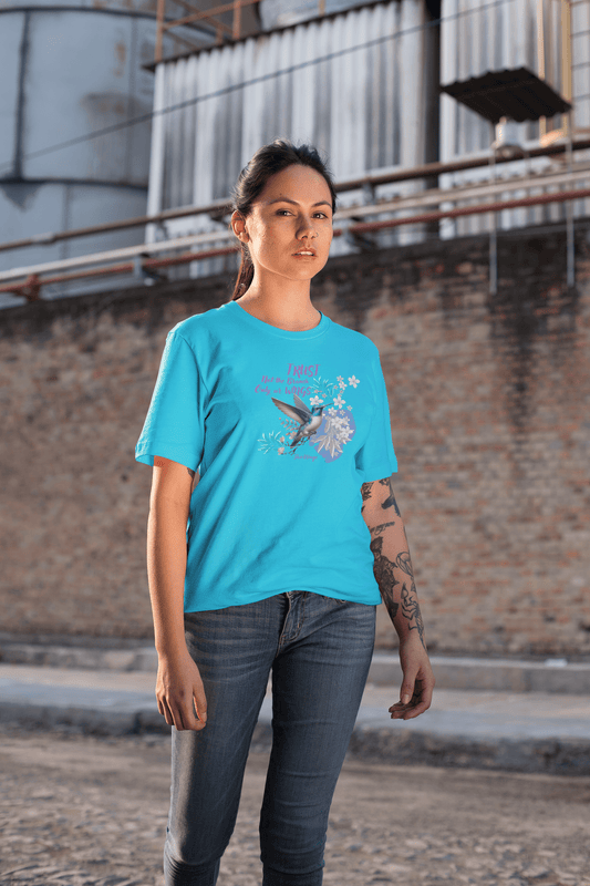 Shez Wings, Trust Your Wings Sky Blue Oversized Printed T Shirt Women