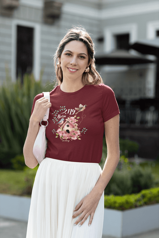 Shez Wings, Born to Fly Maroon Oversized Printed T Shirt Women