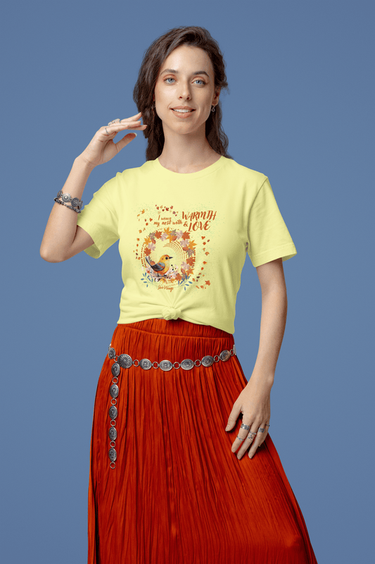 Shez Wings, Nest Butter Yellow Oversized Printed T Shirt Women
