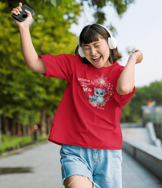 Shez Wings, Wizdom Red Oversized Printed T Shirt Women