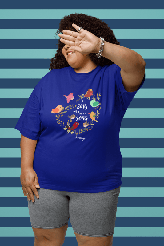 Shez Wings, I Sing Royal Blue Oversized Printed T Shirt Women