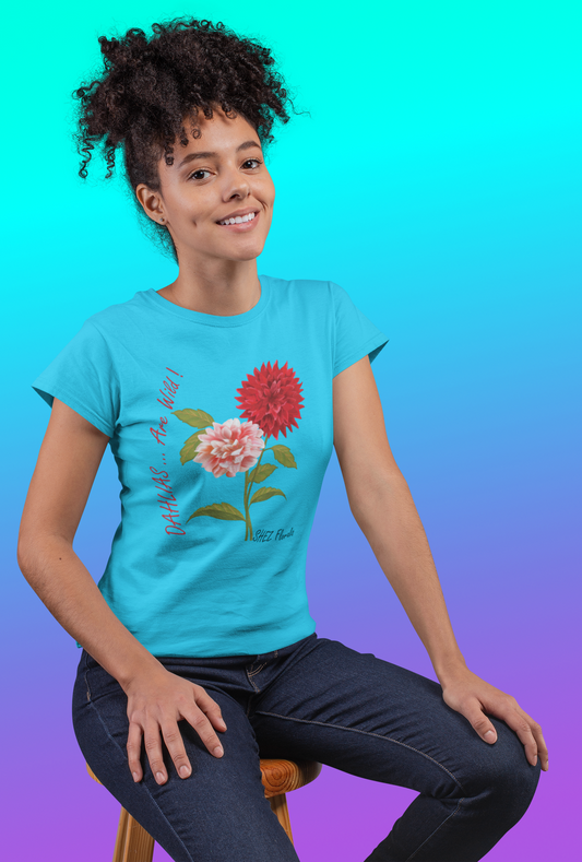 Shez Florals, Dahlias Sky Blue Printed Oversized T shirt Women