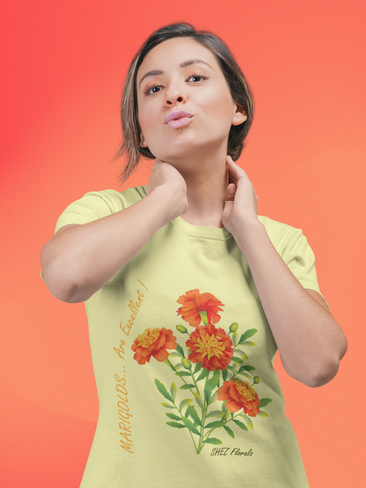 Shez Florals, Marigold Yellow Printed Oversized T shirt Women