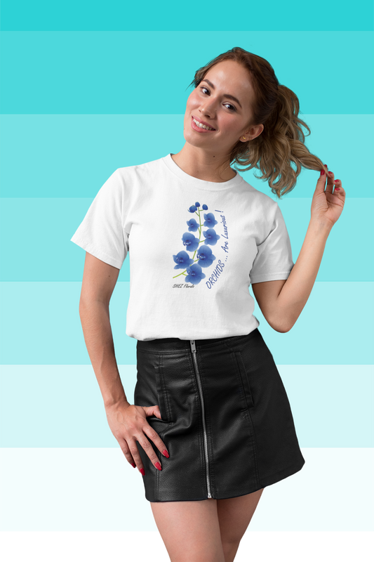 Shez Florals, Orchids White Printed Oversized T Shirt Women