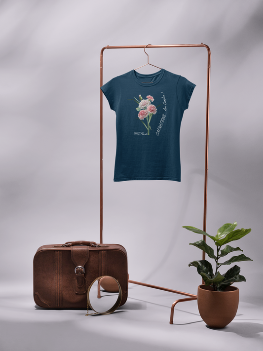 Shez Florals, Carnations Navy Blue Printed Oversized T Shirt Women