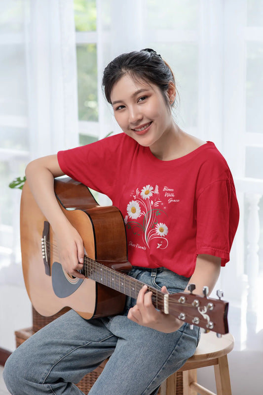 Shez Florals Red T Shirt for Women, Bloom with Grace