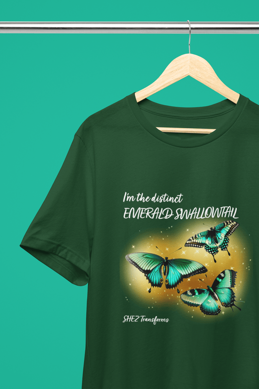 Shez Transforms- Emerald Butterfly Olive Green Women Top, Loose Fit Womens Tshirt