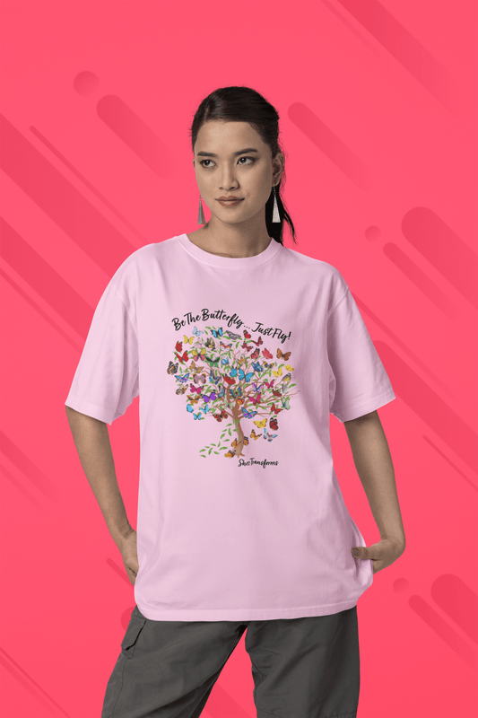 Shez Transforms, Butterfly Tree Light Pink Oversized Tshirt Women