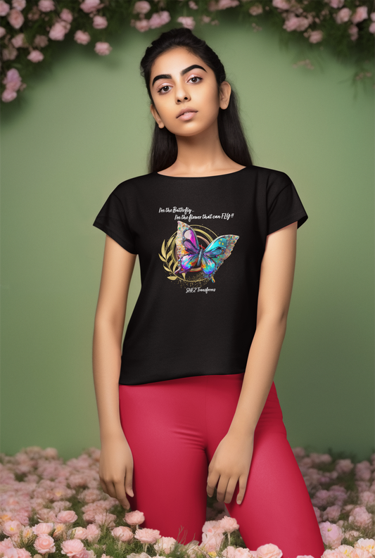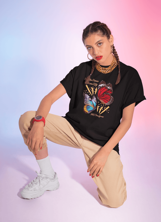 Shez Transforms, I am the Flower that Flies Black Oversized Tshirt Women