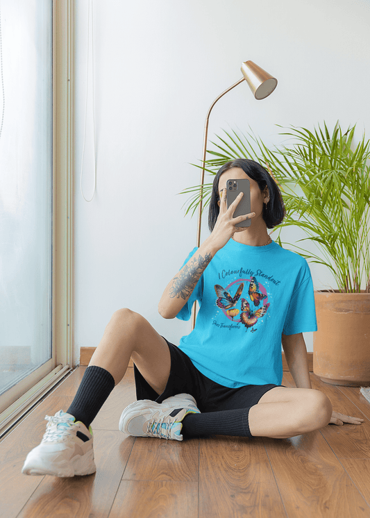 Shez Transforms- Colourfully Stand Out - Sky Blue, Loose Fit Women Tshirt