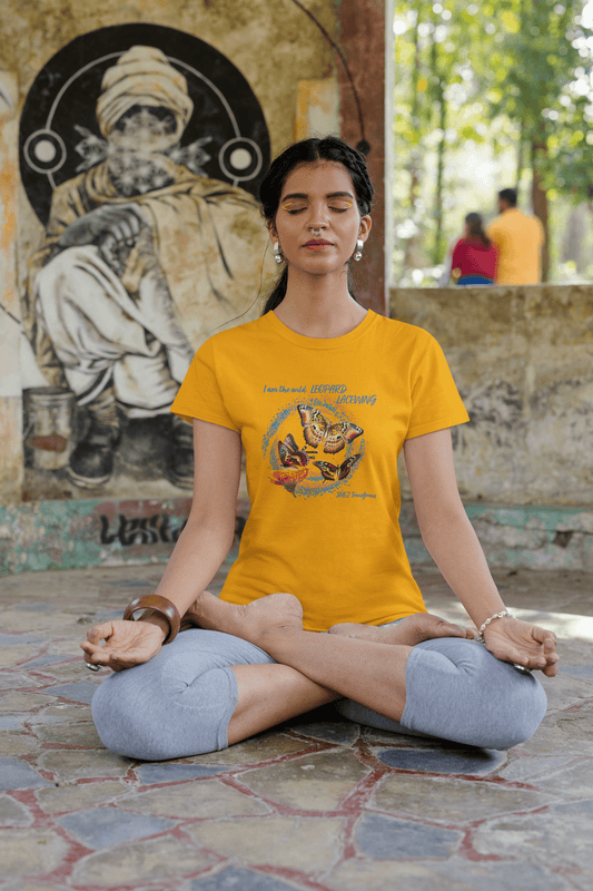 Shez Transforms- Leopard Lacewing Golden Yellow Women's Top, Loose Fit Women Tshirt