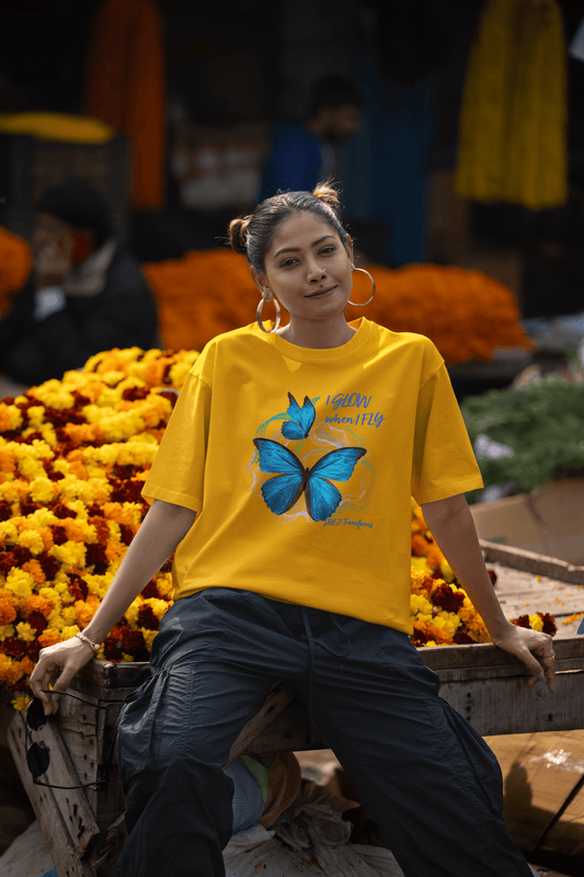 Shez Transforms, Bluemorpho Butter Yellow Oversized T Shirt Women