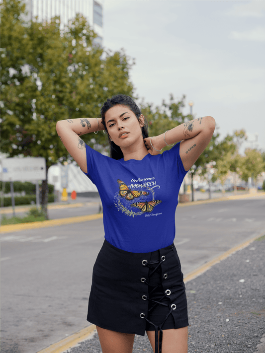 Shez Transforms, Monarch Butterfly Royal Blue Oversized T Shirt Women