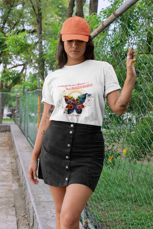 Shez Transforms Metamorphosis Butterfly White OversizedT Shirt Women