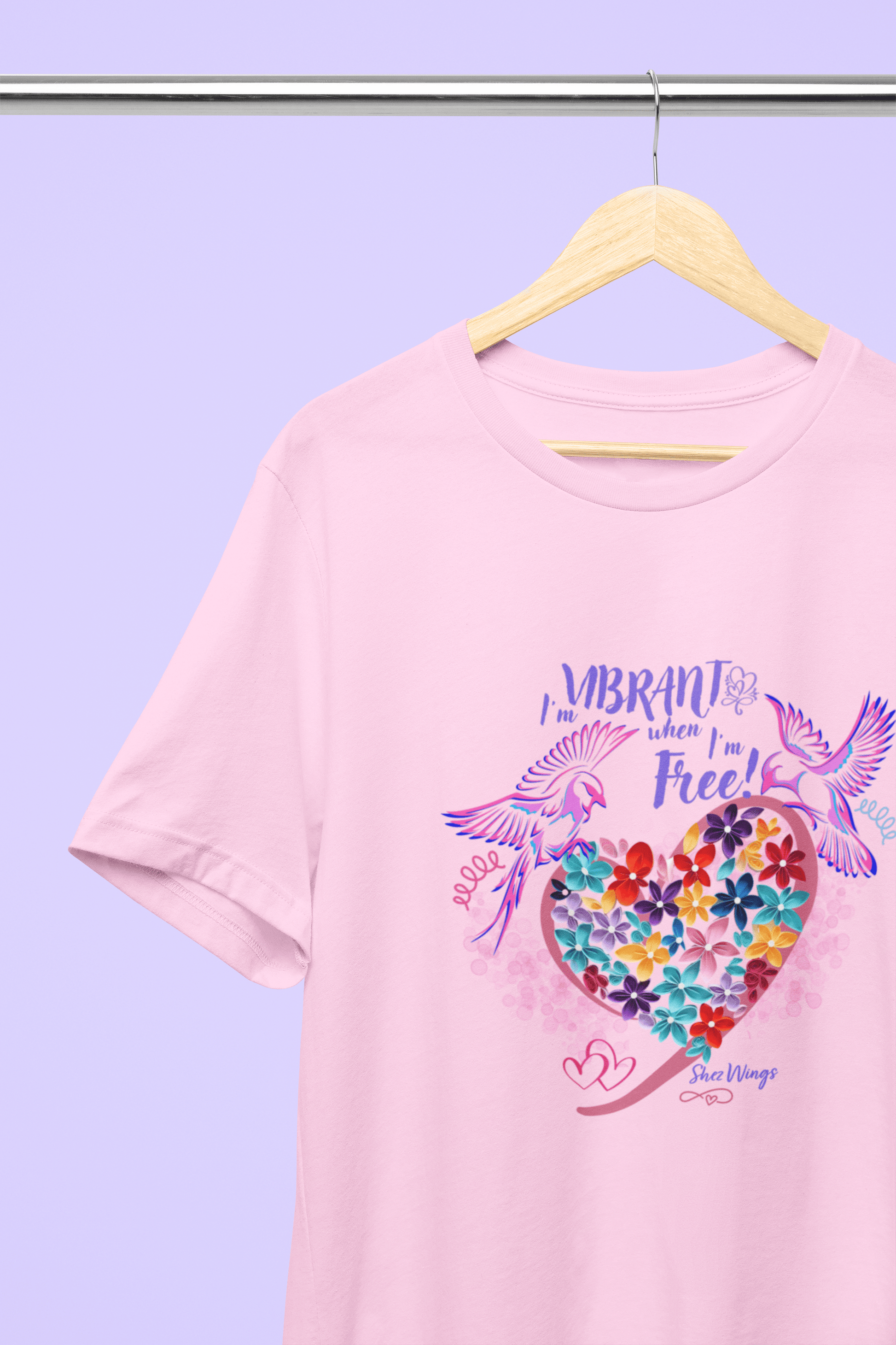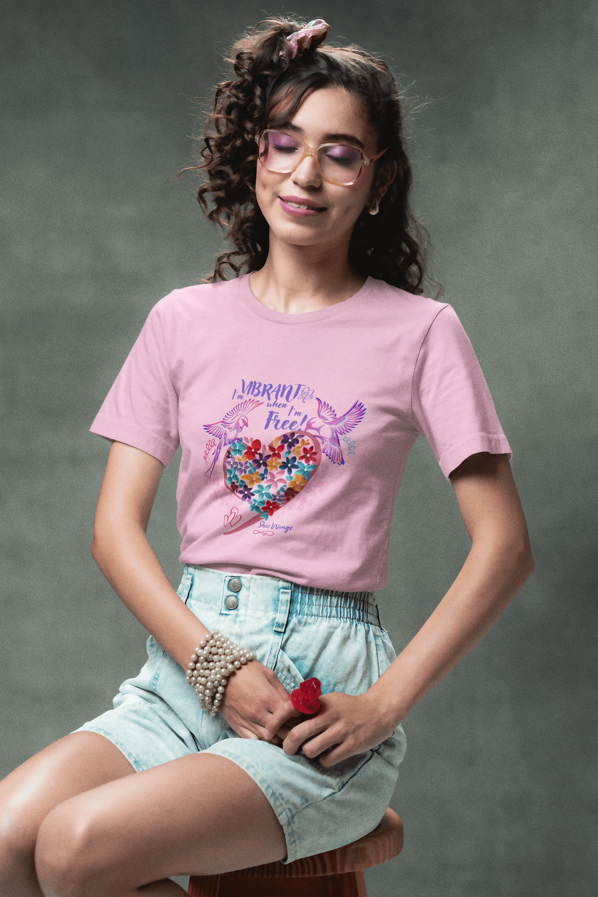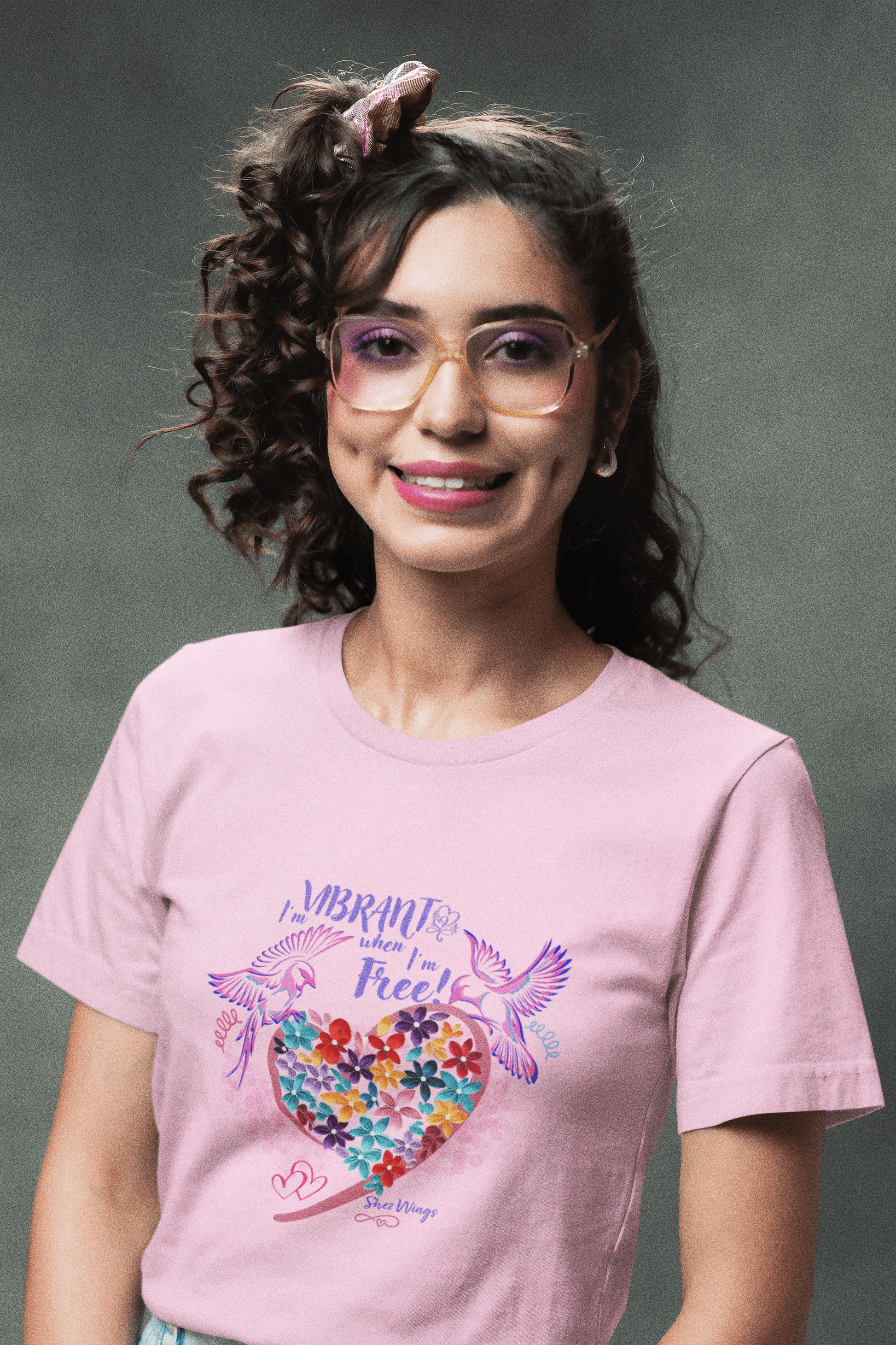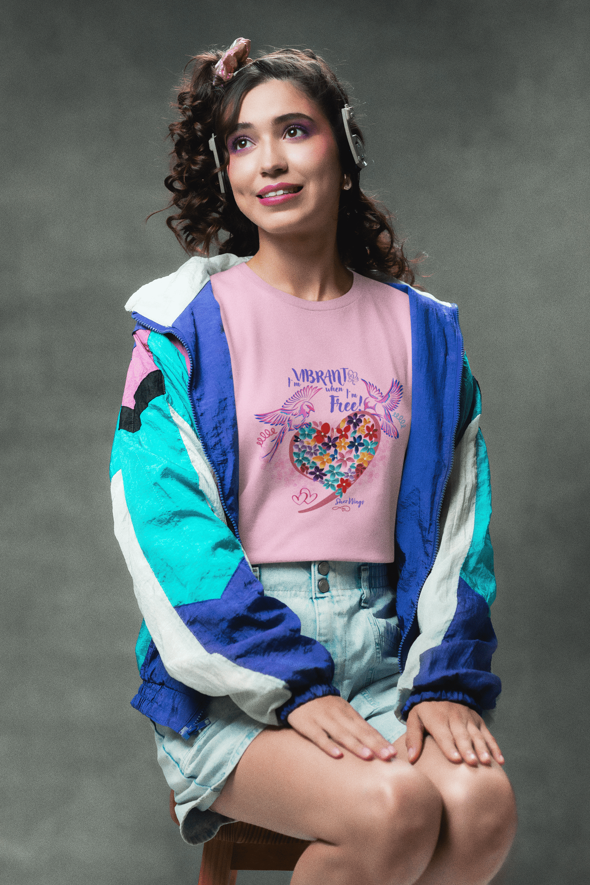 Unleash your vibrant energy with the Shez Wings "I am Vibrant when I'm Free" Oversized Printed Women's T-shirt.